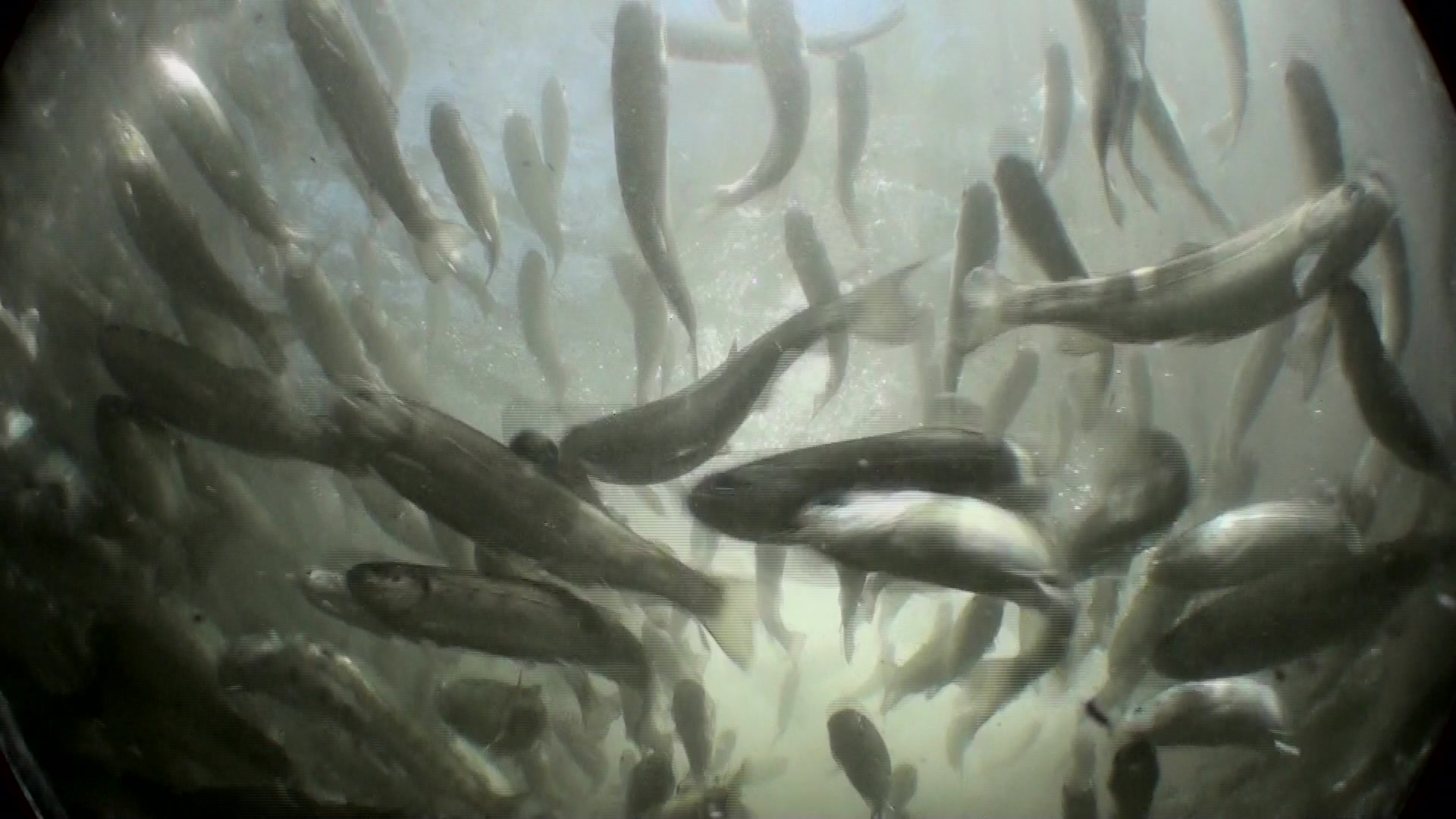 School of juvenile trout swimming