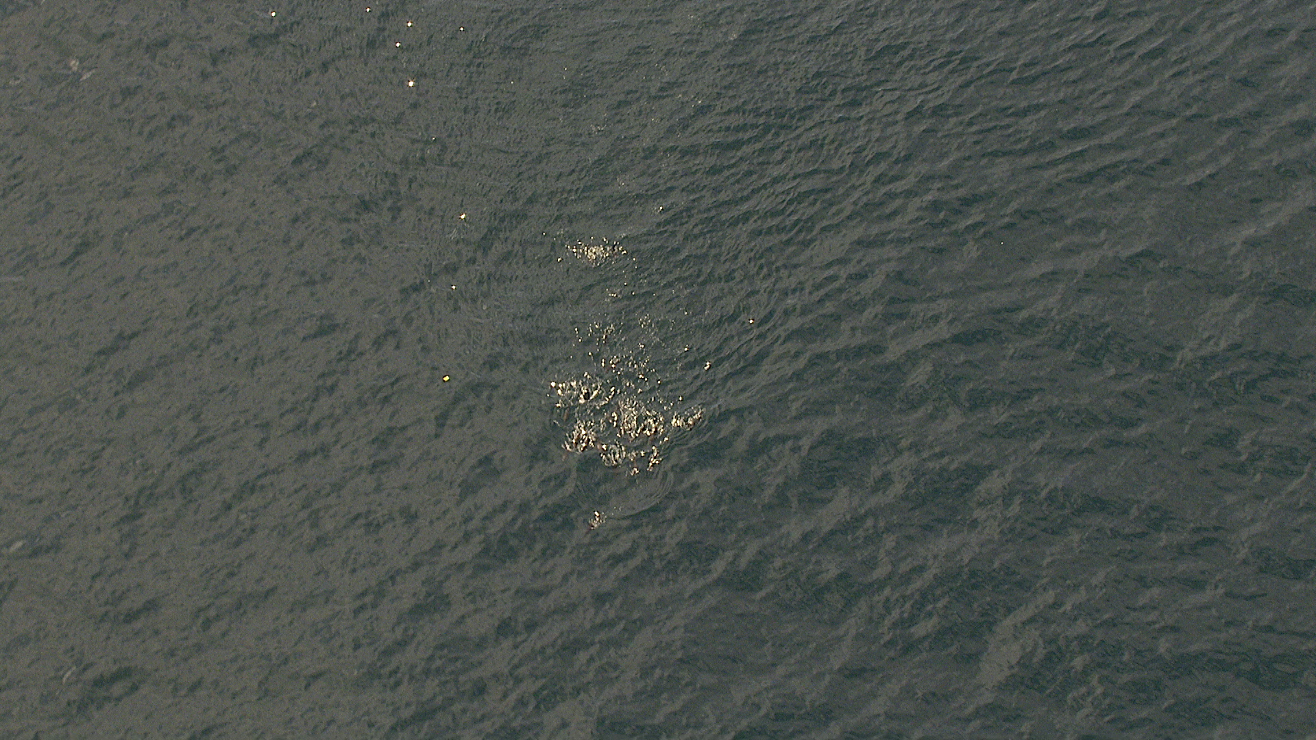 > Aerial view of Common Dolphin swimming off the coast of the Western Cape