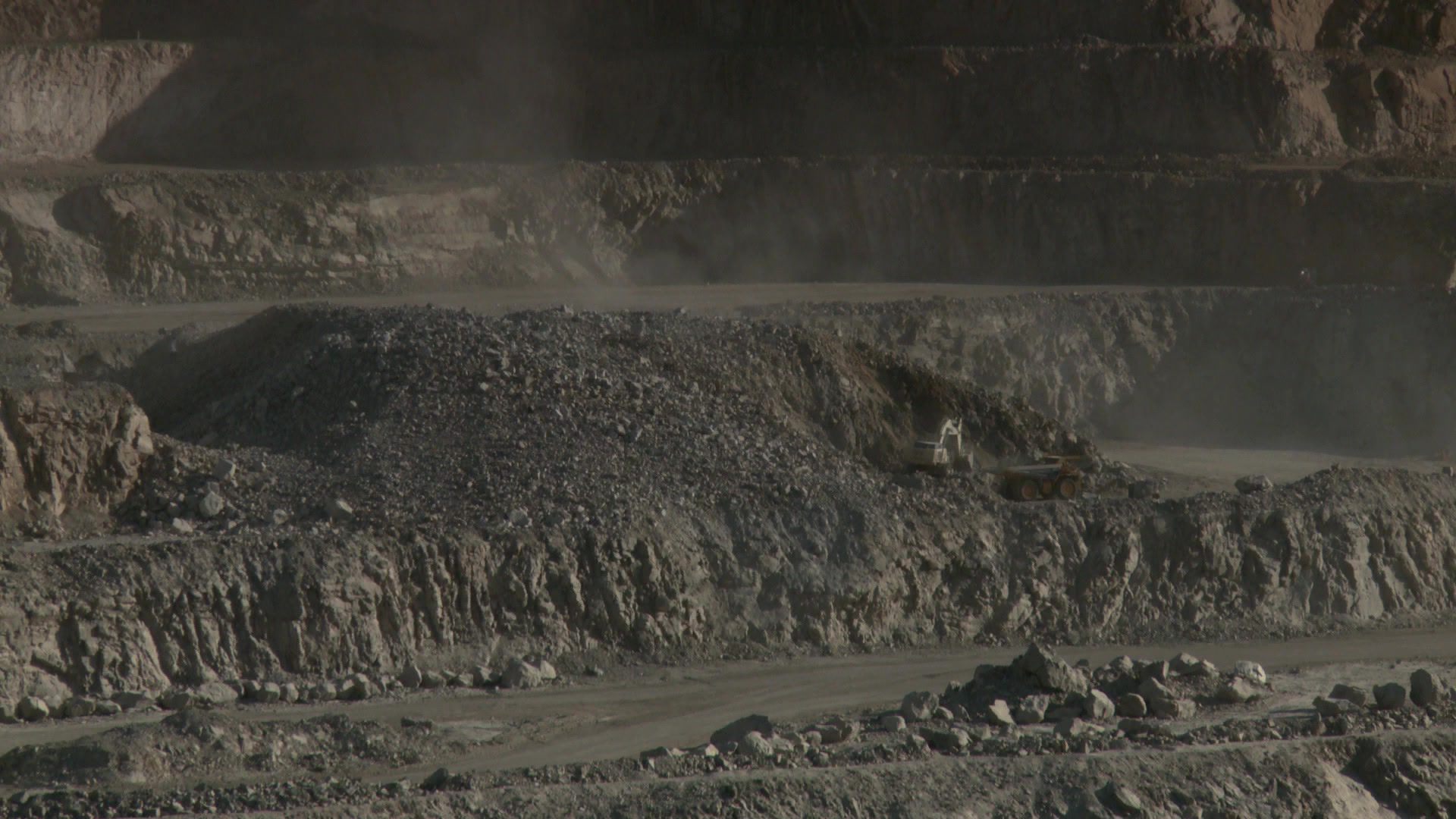 Zoom in of construction site on opencast mine