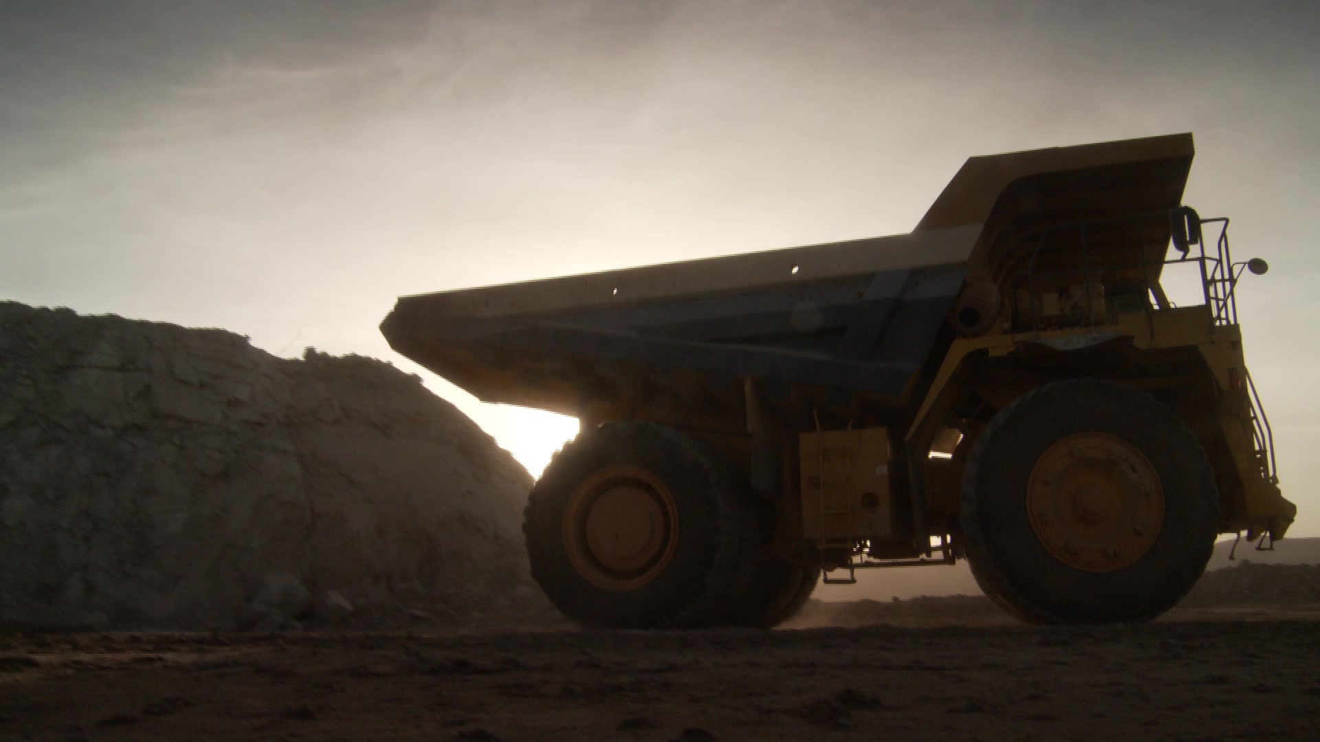 Long shot of a dump truck reversing