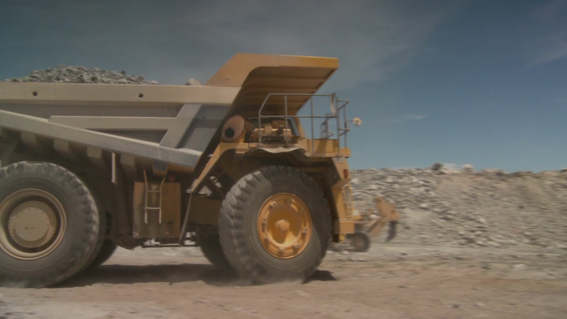 2565495 - Hand held mid shot of a tyre of a construction vehicle