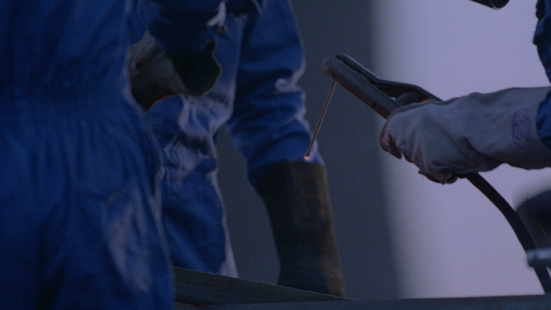 > Medium shot of men welding metal