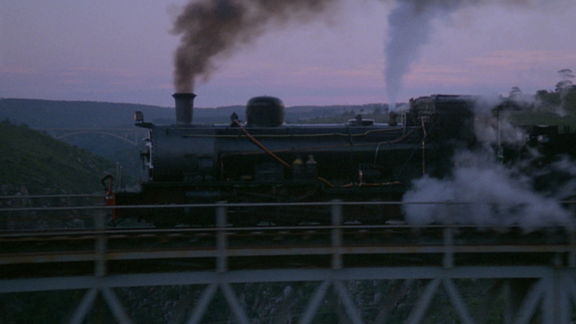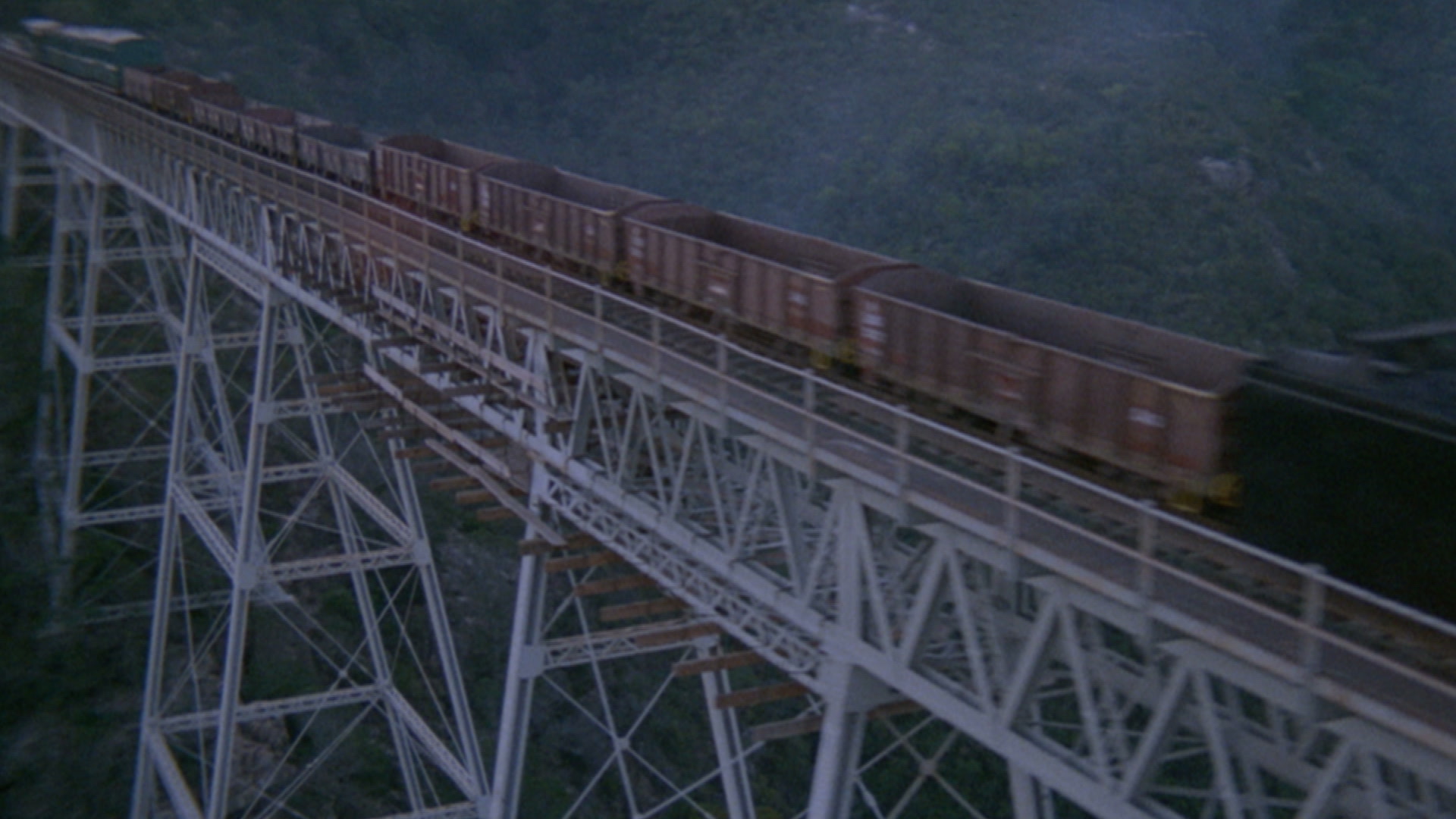 2565774 - Aerial of a steam train travelling over a steel bridge