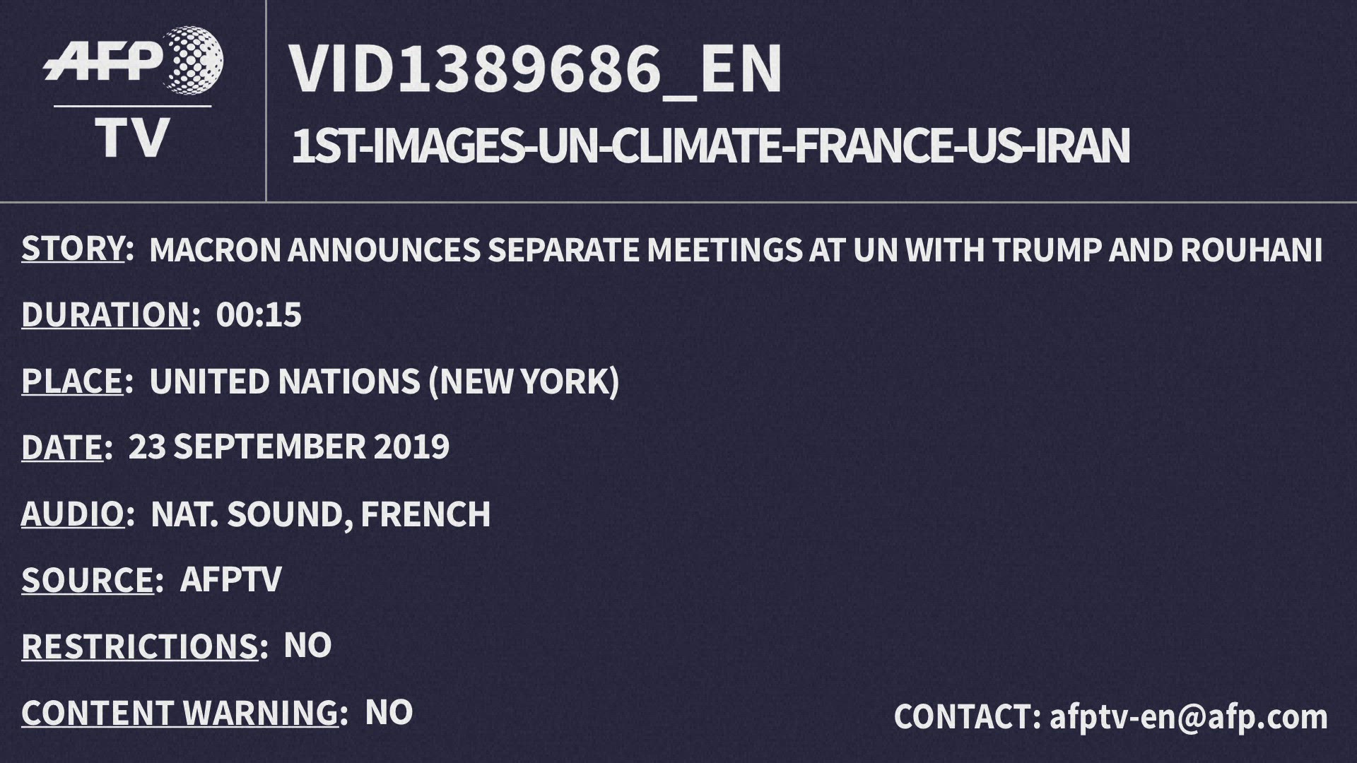 French President Emmanuel Macron uses his address at the UN General Assembly to warn against allowing an approach of "survival of the fittest" to take hold in international relations. Macron also mounted a defense of the current international order after President Donald Trump savaged the UN during his speech. IMAGES AND SOUNDBITES