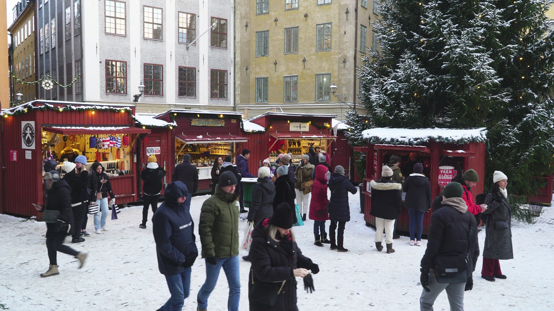 shodows of two persons walking on street in old town stockholm - slow motion shot -