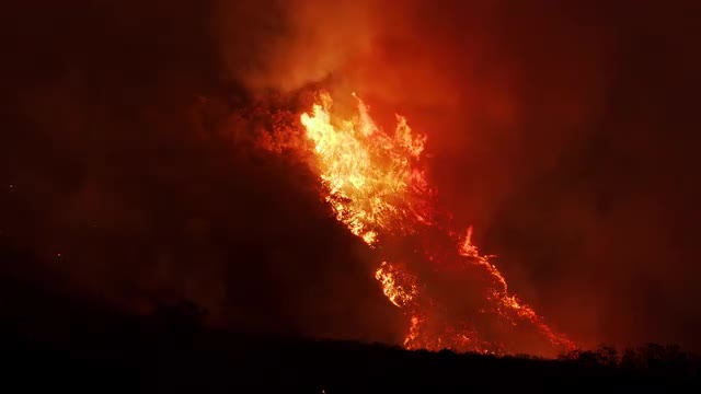 > Wide shot of fires in the hills - The Thomas Fire, California, 2017, 4K