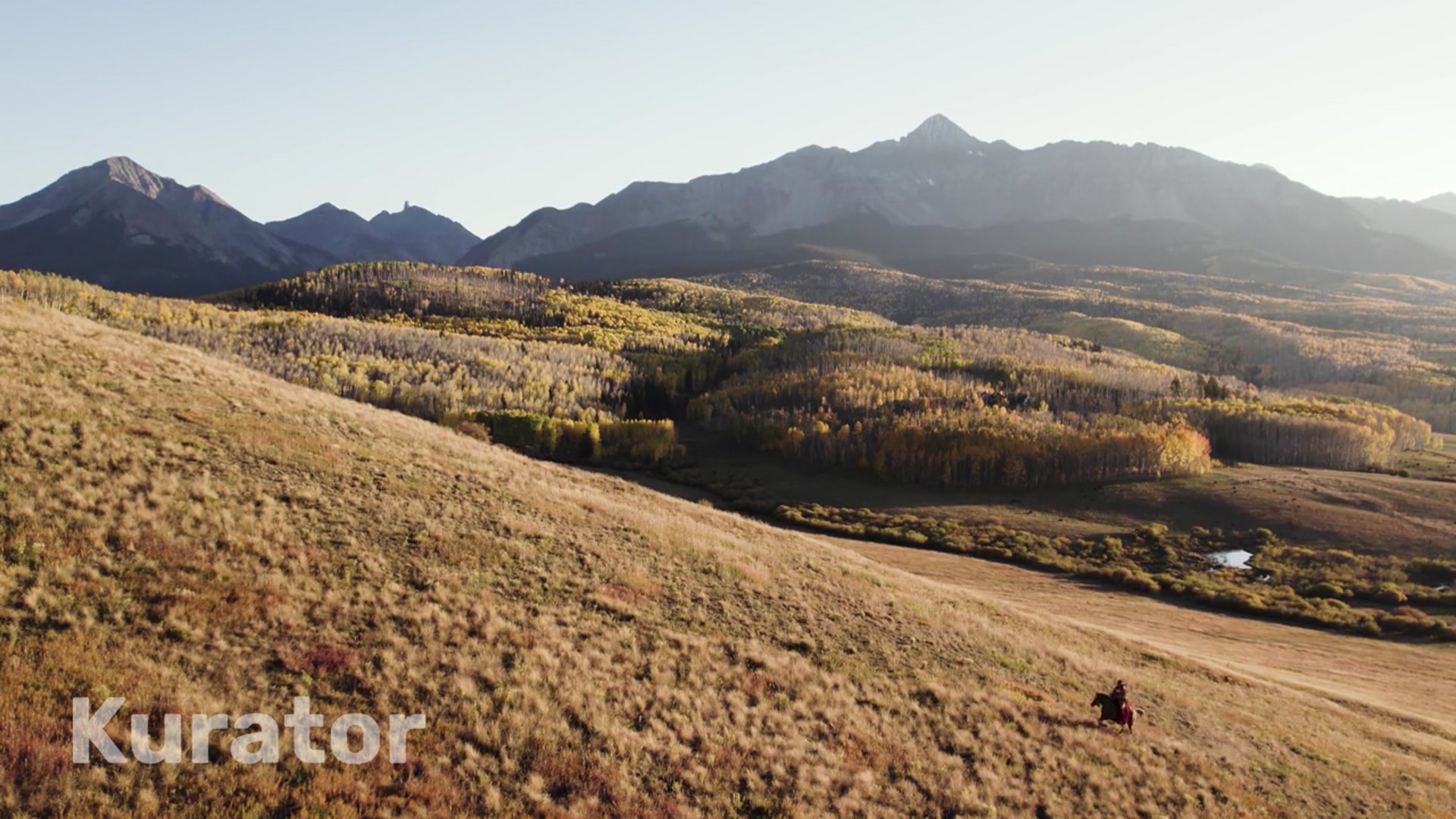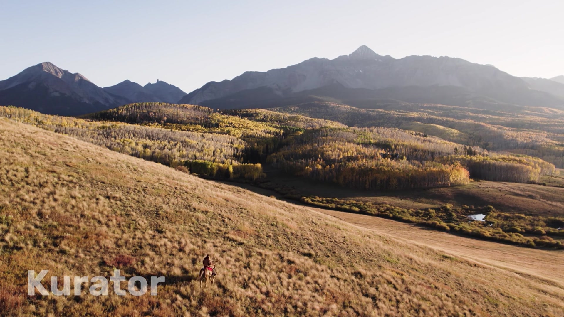 Native Horse & Rider majestic mountain peak in back ground. San Juan Mountains Colorado.