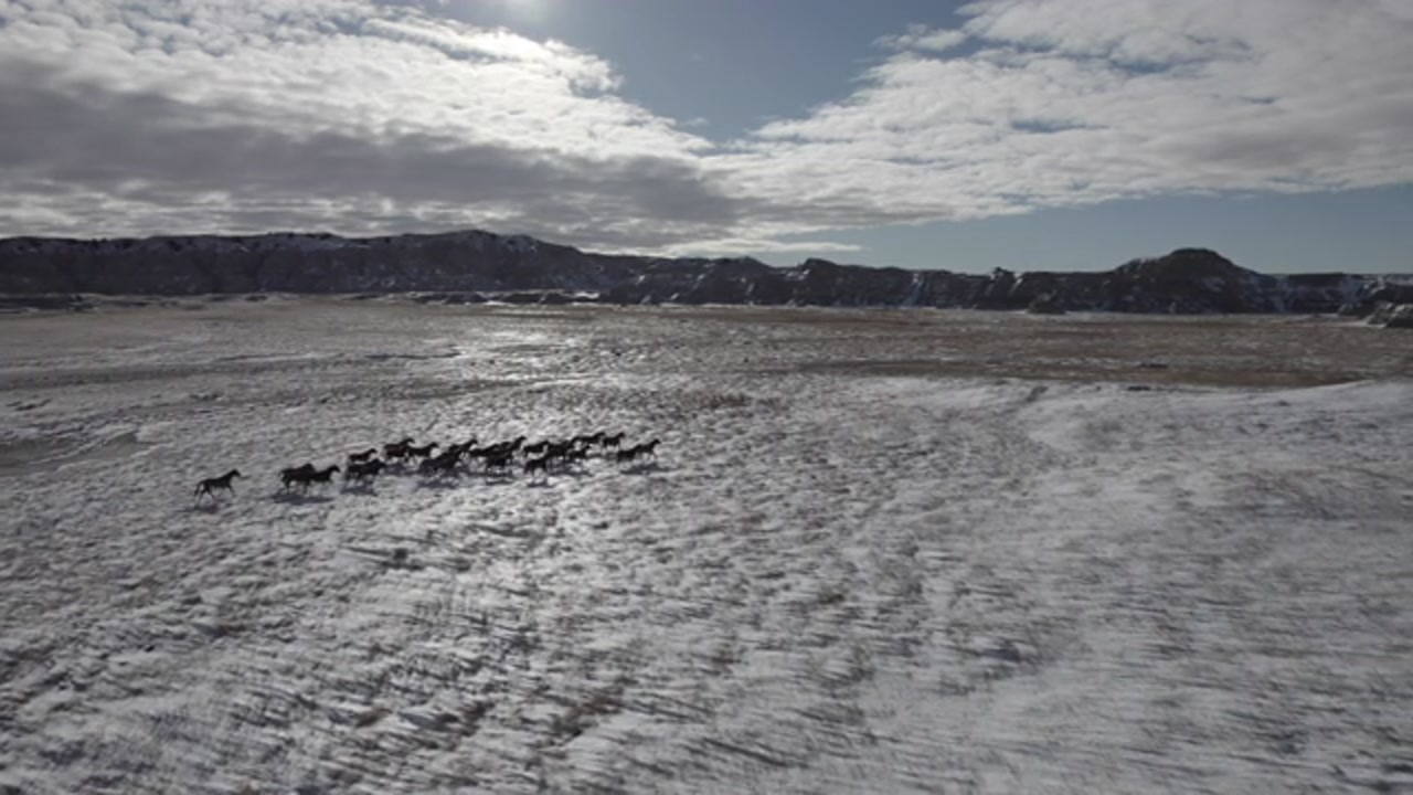 Native Horse & Rider in fresh powder snow and Aspen trees. San Juan Mountains Colorado.