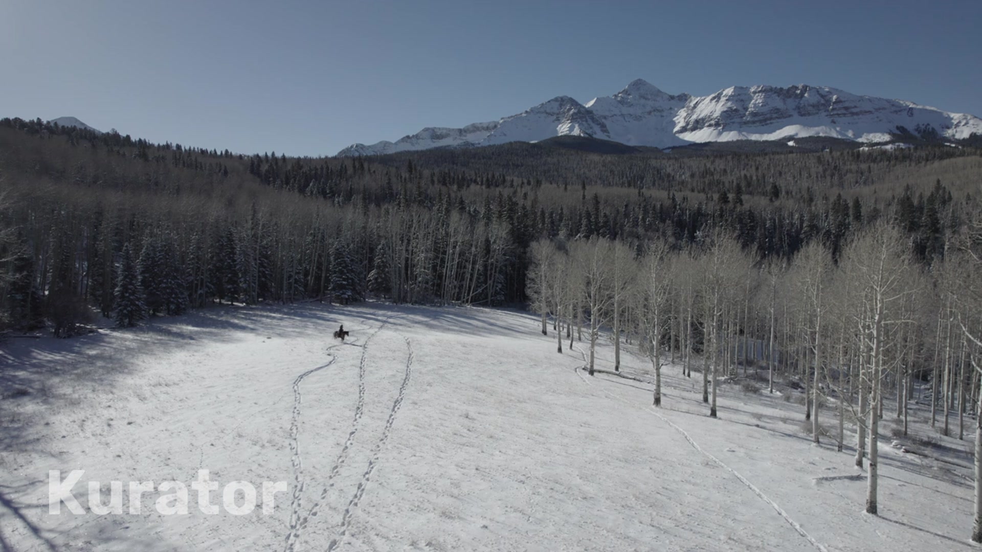 International award winning documentary film director James Anaquad Kleinert & his rescued wild horse Akiywa riding in the San Juan Mountains of Colorado Autumn Colors