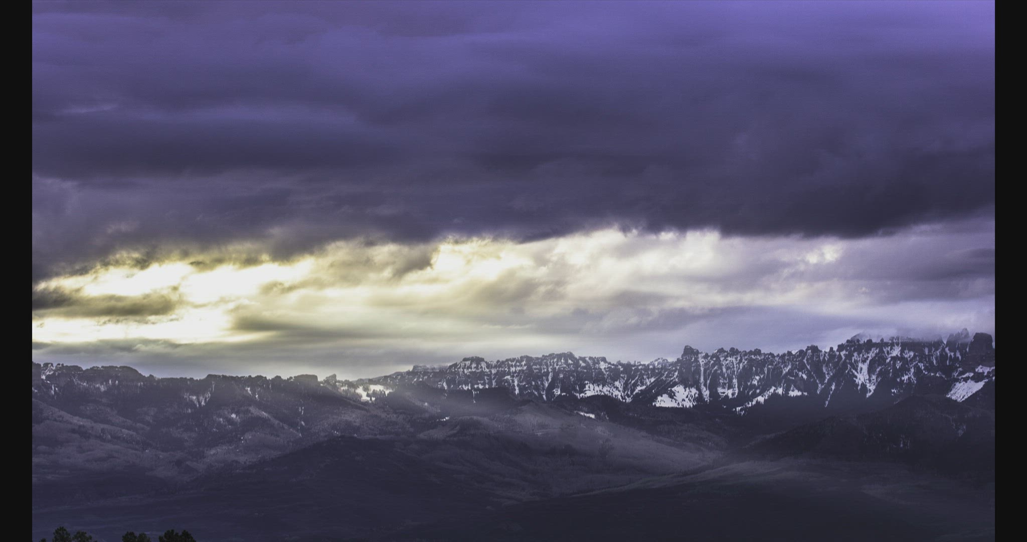 Native close up Rider galloping in fresh powder snow pull out wide with Mt. Wilson in Majestic landscape - San Juan Mountains Colorado.