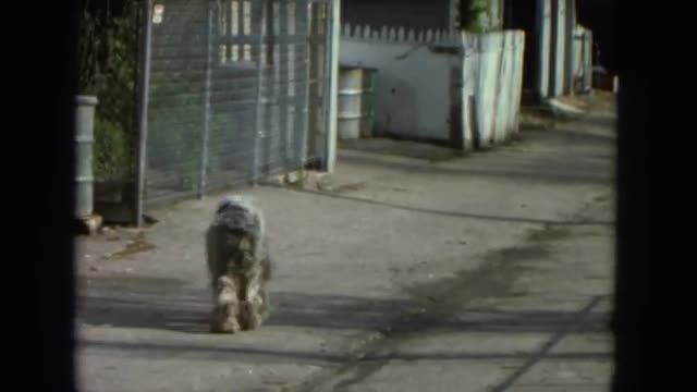 646971 - 1972: a shaggy dog wanders down the street at daytime CHICAGO, ILLINOIS