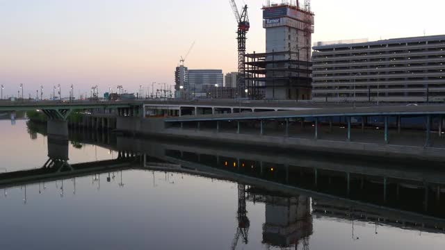 755183 - dusk philadelphia city river bay construction panorama 4k pennsylvania usa