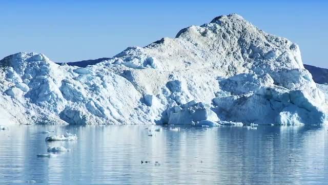 Large floating icebergs broken from a glacier effected by climate change, Arctic region