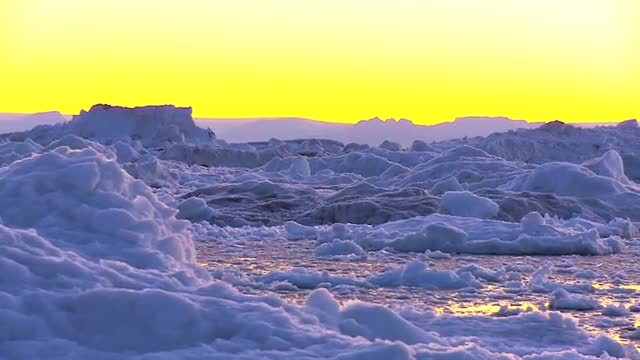 Golden sunset over a frozen arctic landscape