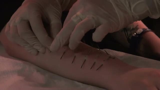 Slow motion macro shot of a tattoo gun on skin