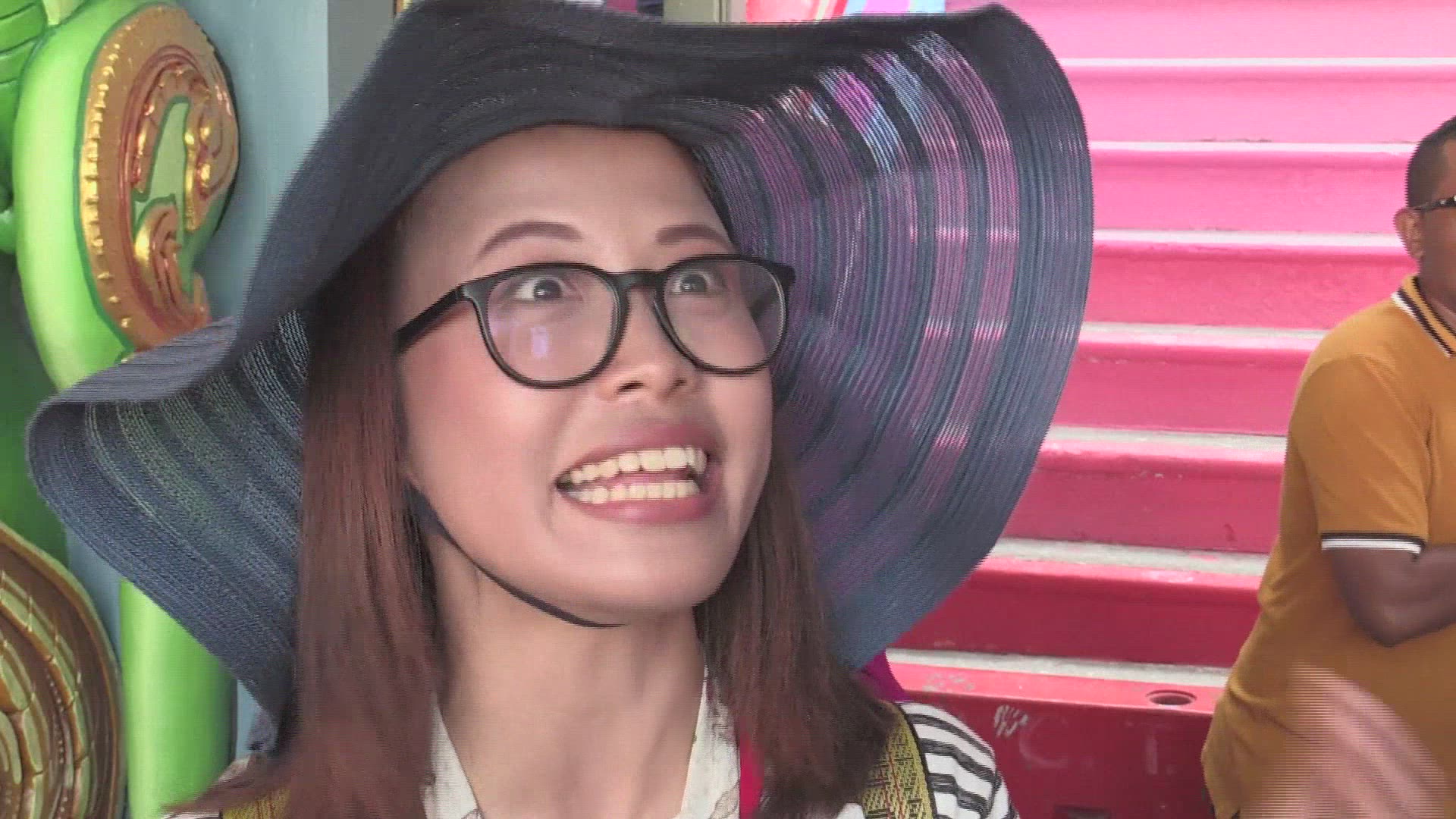 683249 - In Batu Caves seen cave with stalactite and walking tourists climbing the stairs