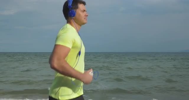Emotional shot with a woman running in slow motion at the beach