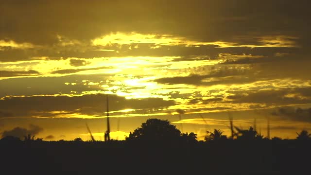 Cloudy sunset behind a cane field - Timelapse