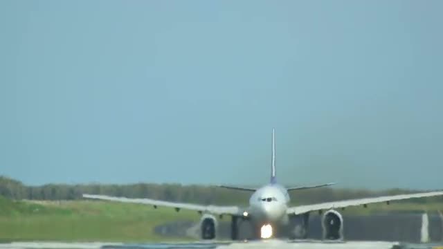 Airplane take-off, long shot, International Airport of Phuket, Thailand