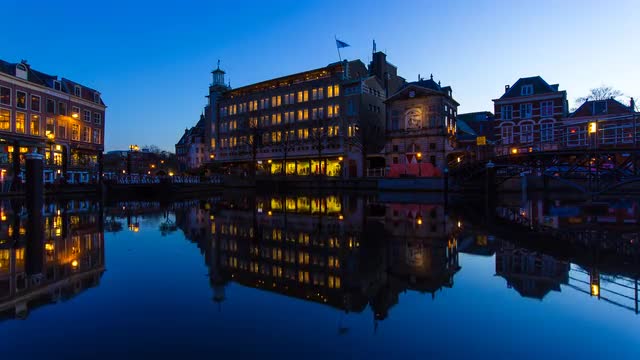 Sunny day with clouds in the old town of Leiden, Holland, The Netherlands, 4K timelapse