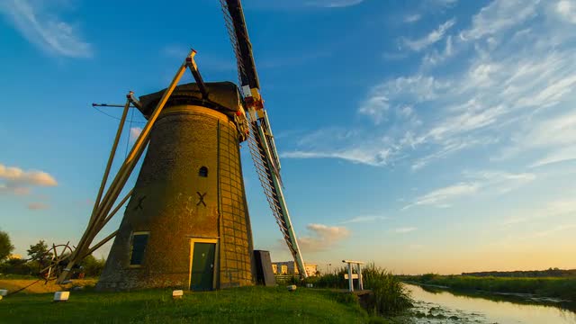 > Sunny day with clouds in the old town of Leiden, Holland, The Netherlands, 4K timelapse
