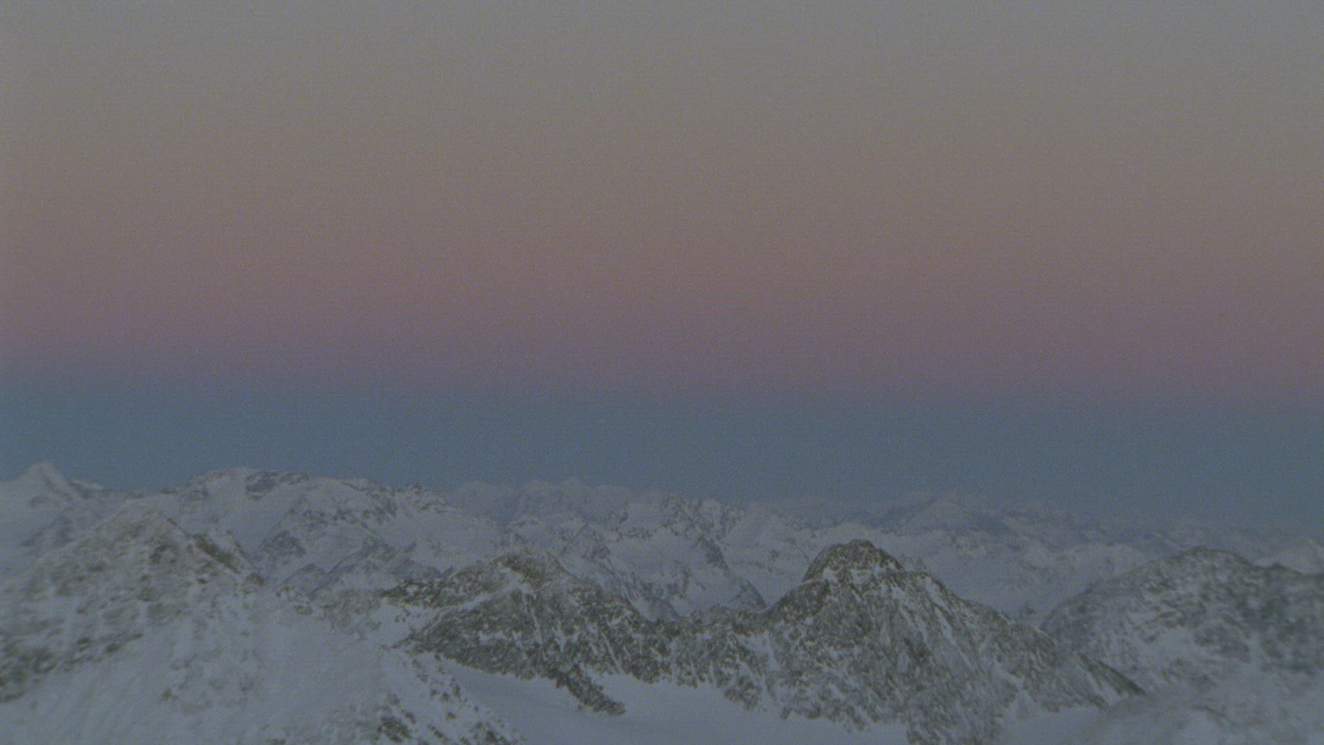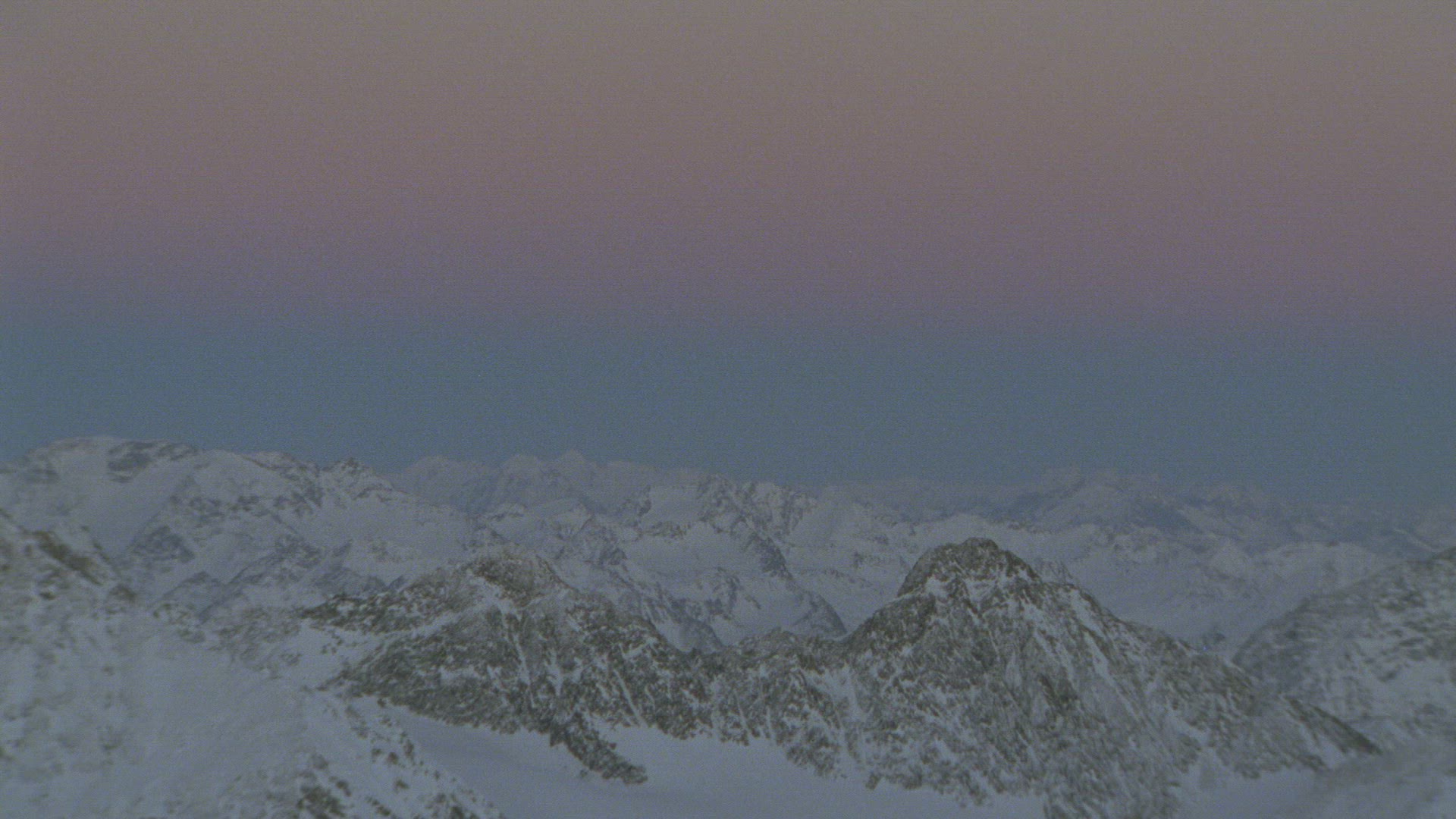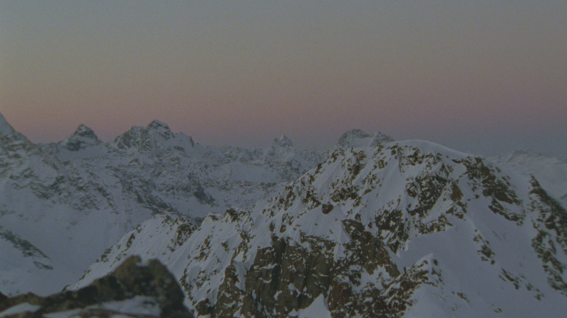 499078 - Aerial shot of snowy mountain ridgeline revealing peak