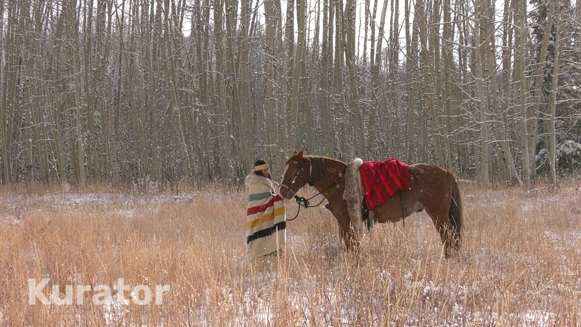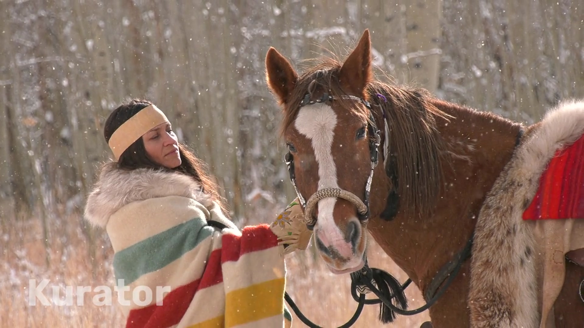 Native Women & Horse, Snow, Aspens, Indigenous, Winter, Colorado.