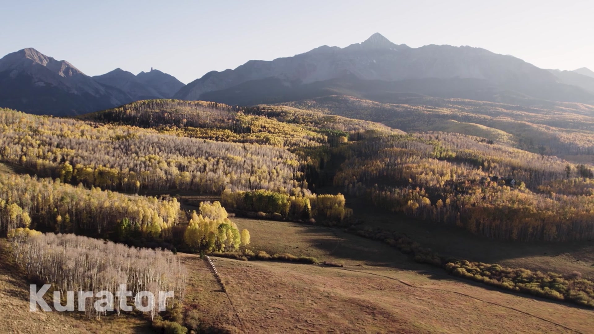 San Juan Mountains Colorado - aerial autumn colors hazy skies.