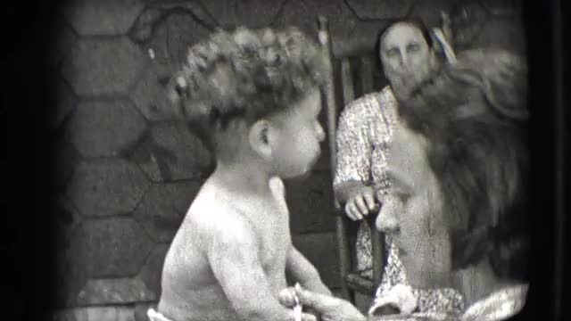 649490 - 1942: shirtless little toddler is being spoon fed by his mother while his grandmother looks on NEW Y