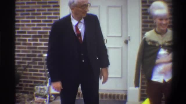 671313 - 1974: small toddler in yellow jacket walks among older family in front of their home FLORIDA