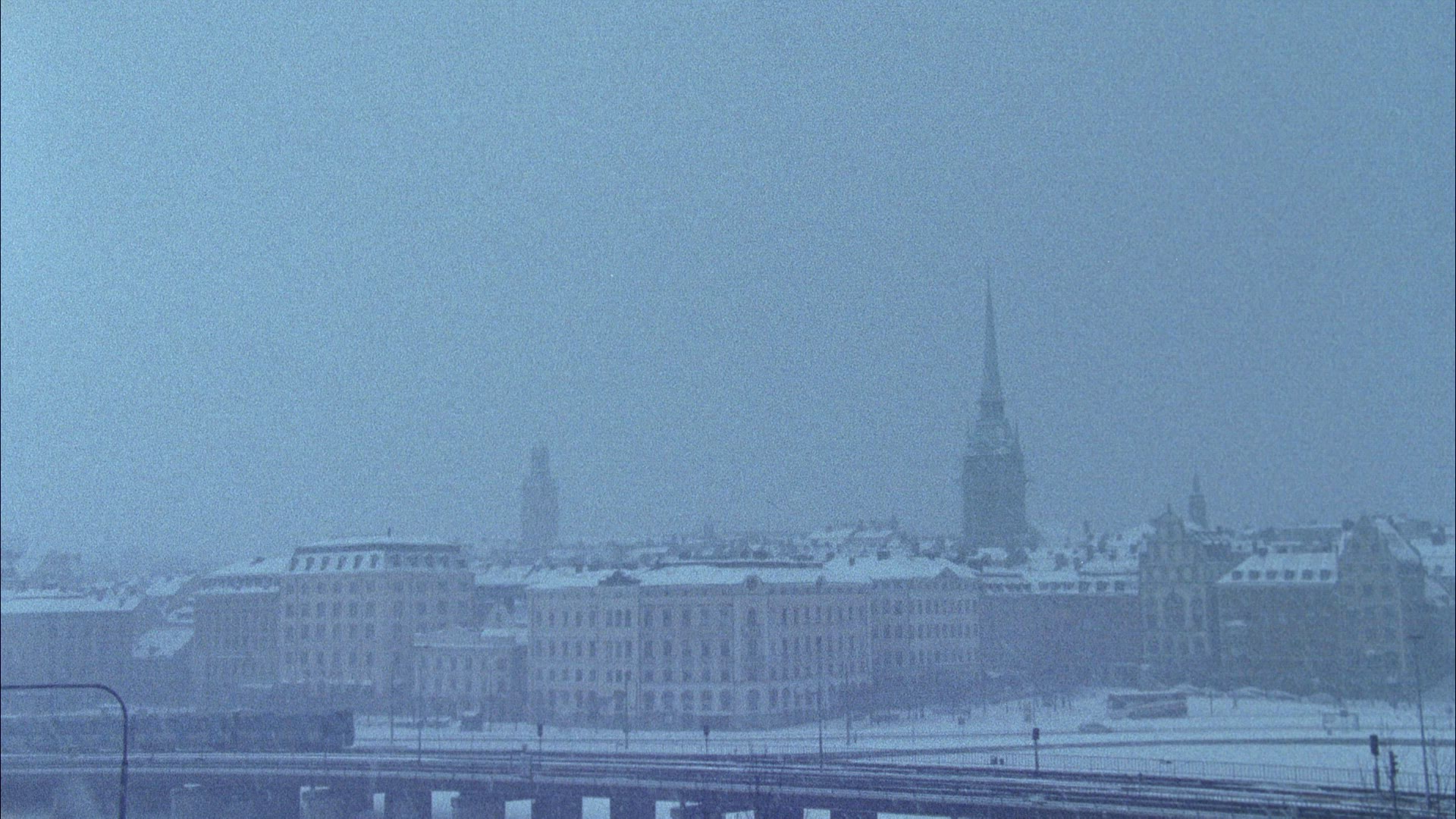 tourists in wintry Old Town in Stockholm - snow falling - slow motion shot