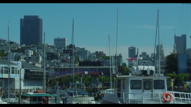4K, 30 Sec shot of the Golden Gate Bridge, ship passing threw view. birds flying around. sunset