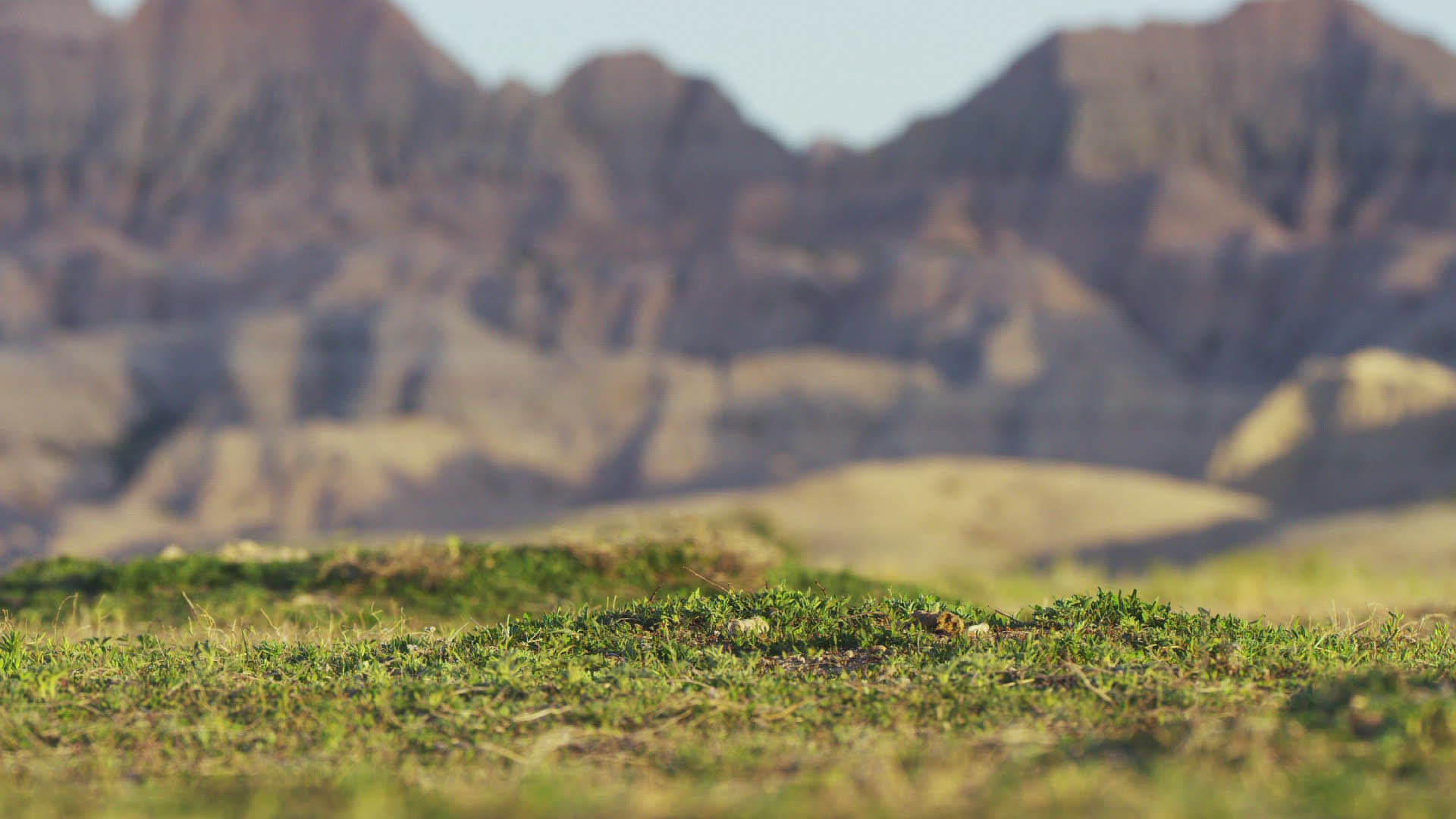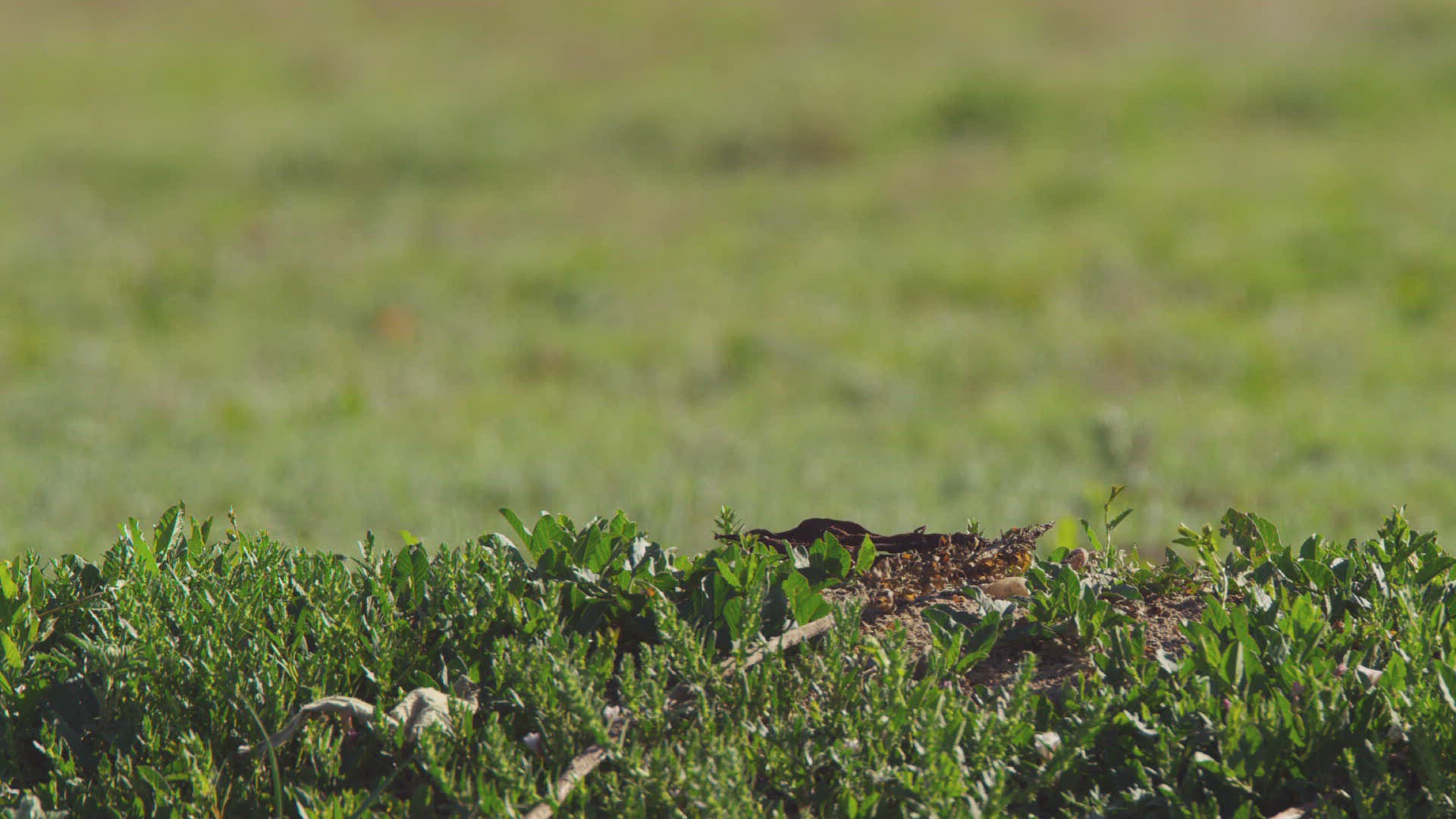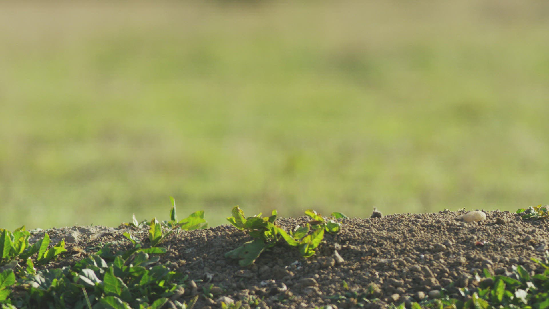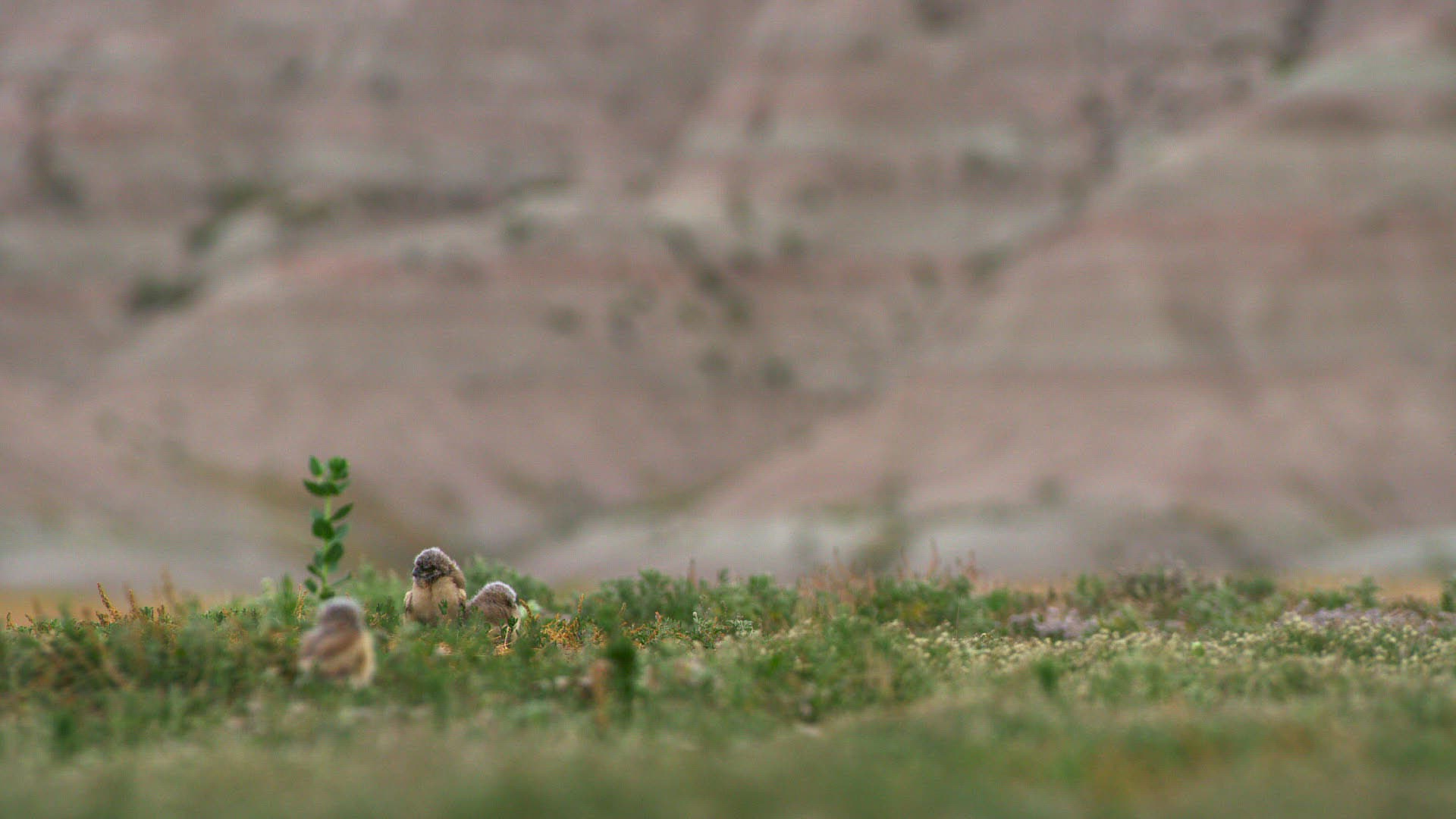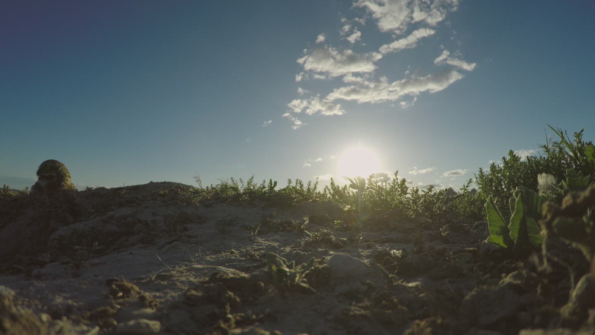 Slow motion medium shot of an owl landing on a rock