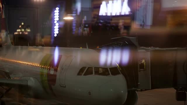 616644 - Airplane is prepared for boarding passengers at night