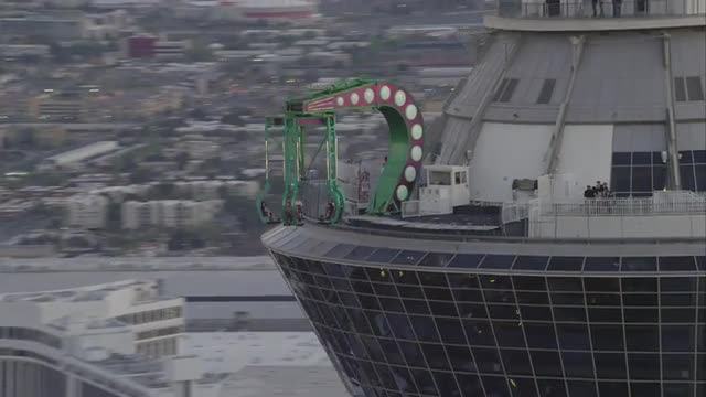 Panning time lapse of the Las Vegas Strip at sunset with shadows falling over skyline