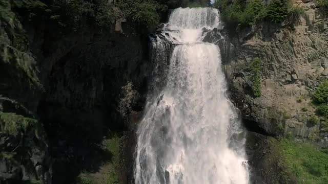 NIAGARA FALLS, CANADA - Circa, June, 2014 - Tourists aboard the riverboat, Hornblower, approach the Horseshoe Falls at Niagara Falls.
