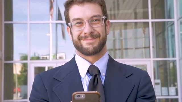 997202 - Young businessman walking and using cell phone
