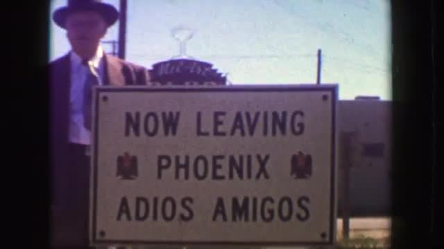 570948 - 1949: Now leaving Phoenix adios amigos roadside travel tourist sign. PHOENIX, ARIZONA