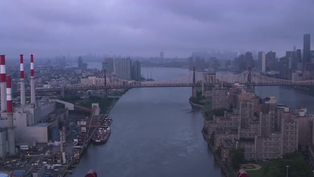 999088 - New York City circa-2017, Aerial view of Interstate 287 approaching Verrazano-Narrows Bridge. Shot