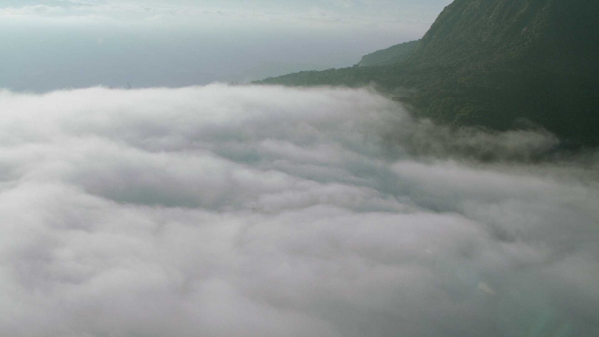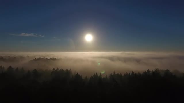 620103 - Flight over the foggy forest at dawn 4k