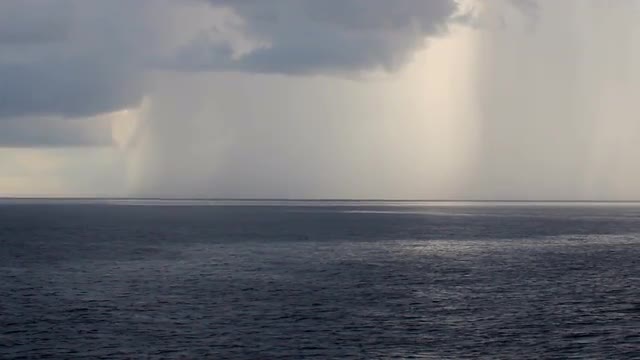 A storm in the distance over the ocean.