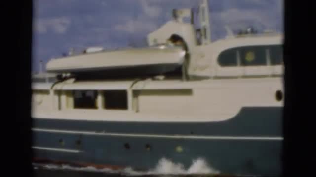 642710 - 1951: white and blue boat quickly leaving a crowded dock out to sea FLORIDA