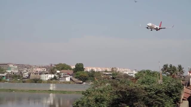 A time lapse passenger perspective of an airplane preparing for landing.