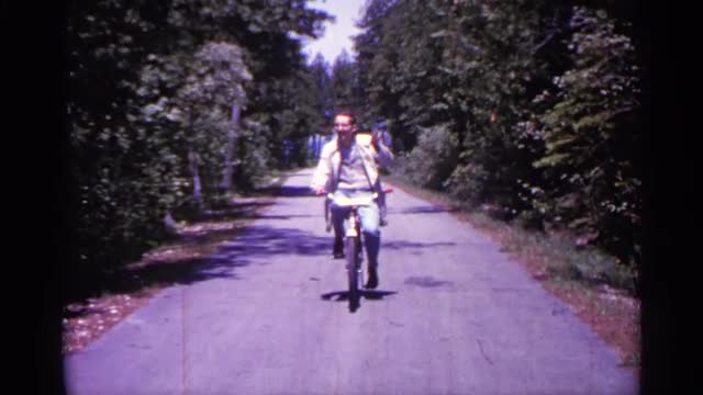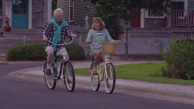 A young couple in bicycle helmets smile at the camera. Shot at 60fps for true slow motion.