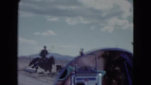 648510 - 1959: cowboys herding cattle in desert with mountains in the distance ARIZONA