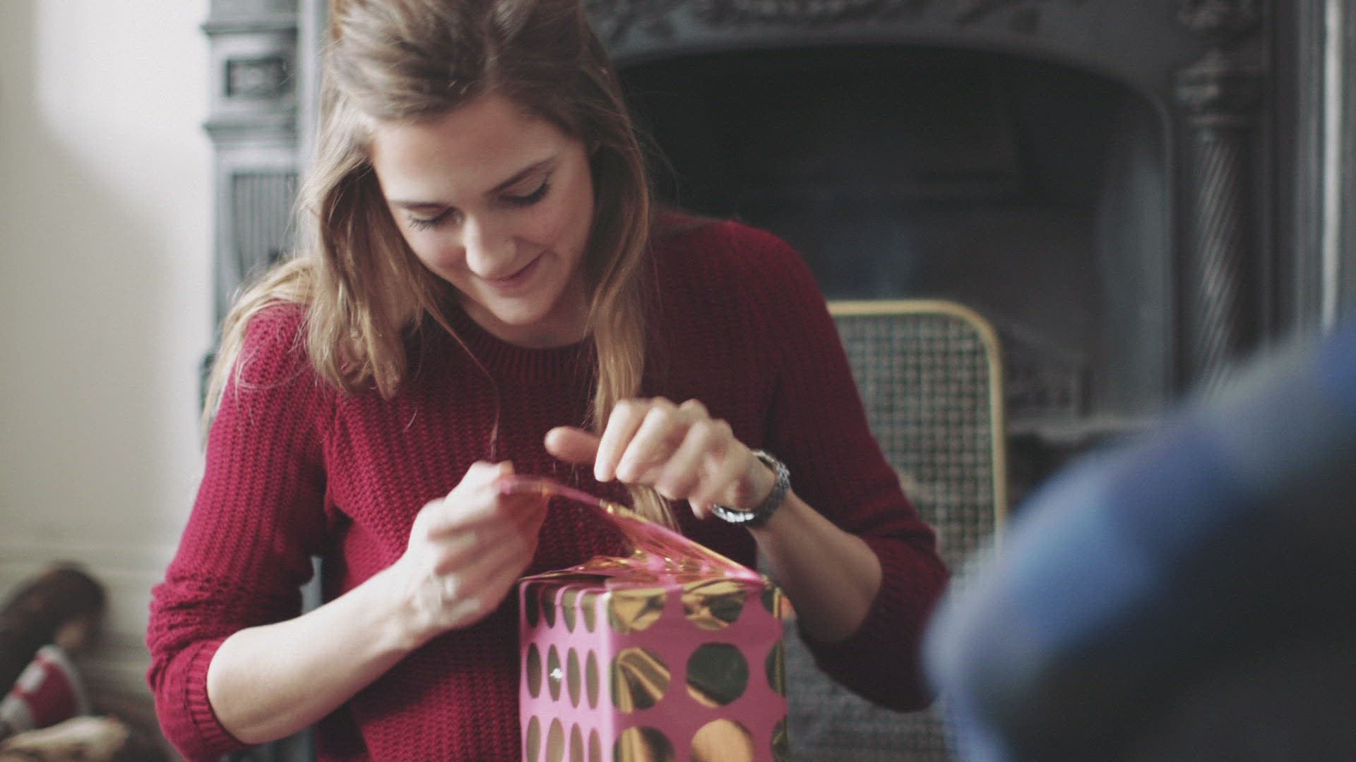 Opening up a gift or present. Keyable, with luma matte.