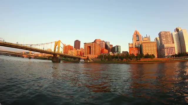 The skyline of Pittsburgh, Pennsylvania as seen from the river at dusk. MAY BE SUITABLE FOR EDITORIAL USE ONLY.