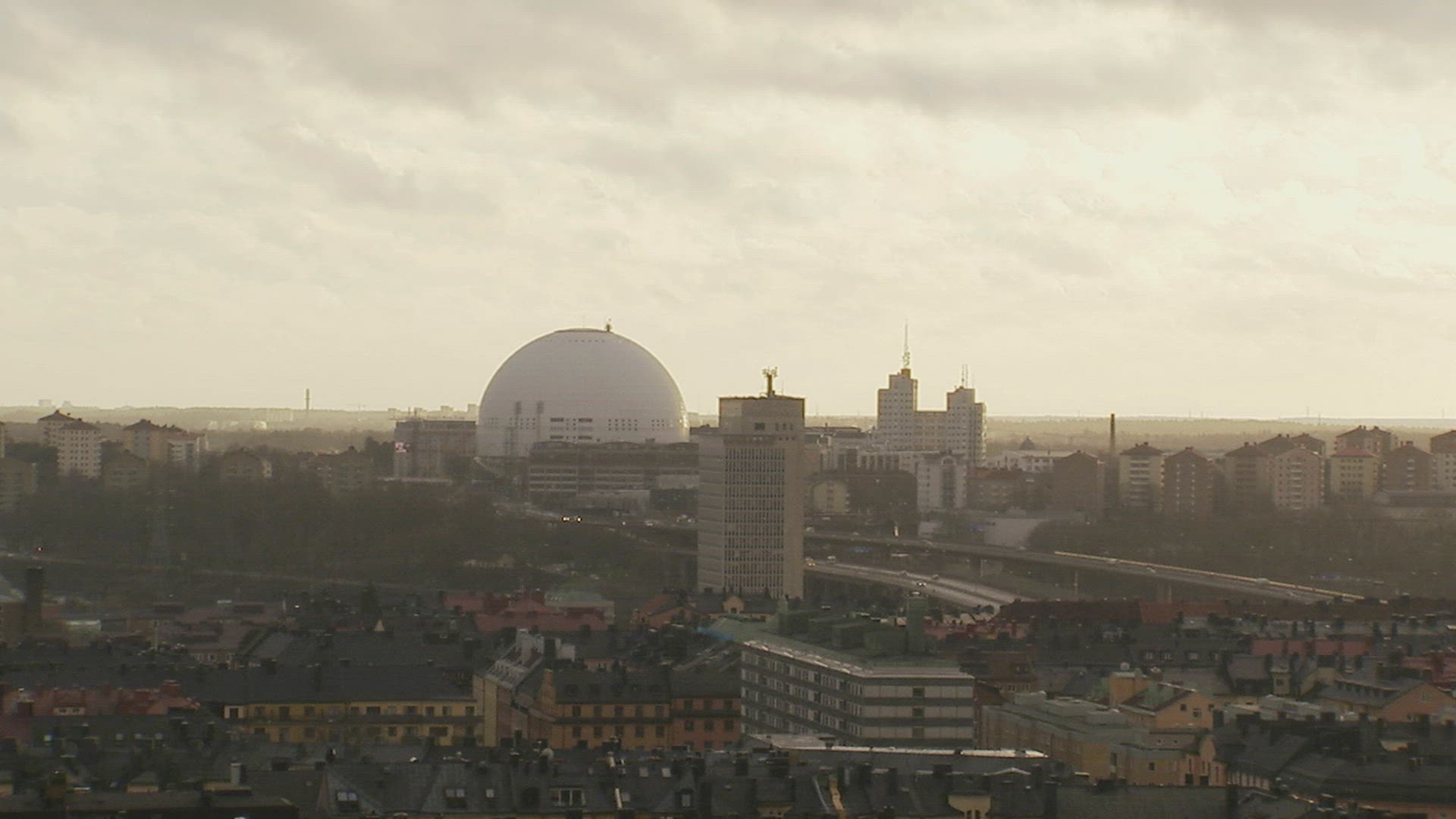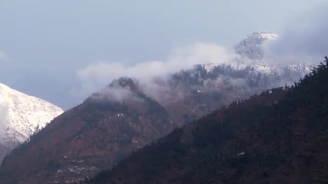 Static shot of city on a hill on the foreground and mountains in the background