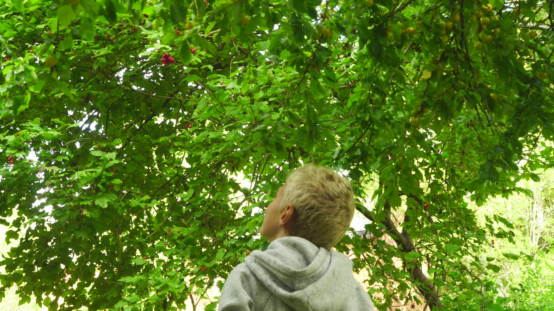 Defocused mountain biker with foreground cobweb on small bush in misty wood. Single Shot. Format: ProRes 422 HQ