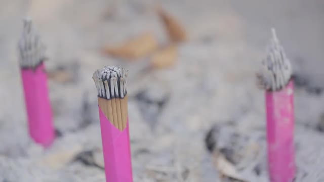 Incense Sticks Burning in Giant Pot in Front of Buddhist Temple